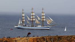 Hace justo una semana, los primeros veleros participantes en la Tall Ships Races comenzaban a avistarse en las costas gallegas. Desde entonces, día a día, en mar y en tierra, no han dejado de generar espectáculo. Para ayer estaba prevista su partida desde el puerto coruñés hacia Dublín, continuando así con una regata única en el mundo. No obstante, aunque el desfile y la parada ante la Torre de Hércules sí se llevaron a cabo según lo previsto, las malas condiciones meteorológicas obligaron a la organización a posponer la incursión en el mar de los navíos, causando también algún que otro mareo a bordo. De este modo, las embarcaciones más grandes se dirigieron hacia la ría de Ares, para fondear allí, mientras que las más pequeñas volvieron a puerto coruñés. Si el tiempo lo permite -aunque MeteoGalicia ha activado para hoy la alerta amarilla por viento en el mar-, los navíos podrían retomar esta tarde su periplo, con el objetivo de llegar el 23 de agosto a la capital irlandesa, punto final de la regata en la edición de este año. La Tall Ships Races acapara las miradas allí por donde pasa. Ayer, fueron numerosas las personas que, a pesar del mal tiempo, se acercaron hasta la zona de Mera, el monte de San Pedro y la Torre de Hércules para presenciar las maniobras de una partida que, finalmente, resultó frustrada. Se esperaba que los veleros consiguiesen reunir unas 600.000 visitas durante su estancia en el puerto coruñés y, según datos de la organización, las expectativas se cumplieron e incluso se llegó a superar esa cifra.